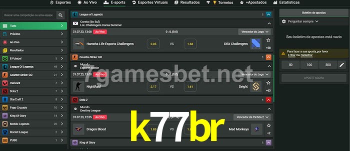 O k77br oferece uma grande seleção de opções de apostas em e-sports com probabilidades competitivas